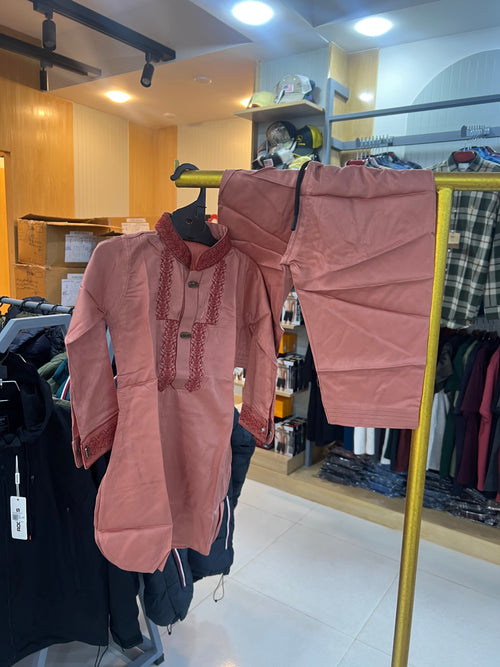BABY Premium Black Panjabi + Trousers Intricate Gold Embroidery 02 LIGHT BRO